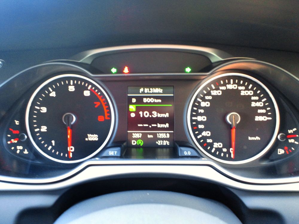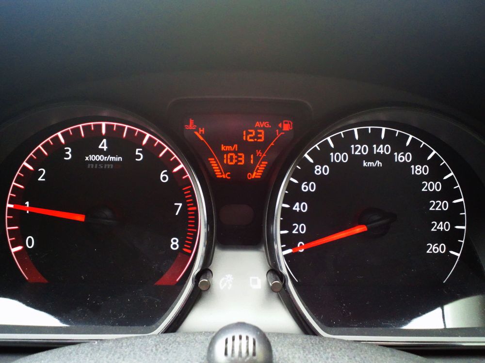 100%市街地を走行しての試乗中の燃費は5.7Km/Lの表示。ただしこれは、走行前に燃費計をリセットしなかったのでこの個体の生涯燃費に近い値と思っていただきたい。試乗車とあってエンジンをかけたり止めたり、走ってもちょっとした距離に留まるわけで、この値は仕方がない。普通に走って10Km/Lは行くとのこと。