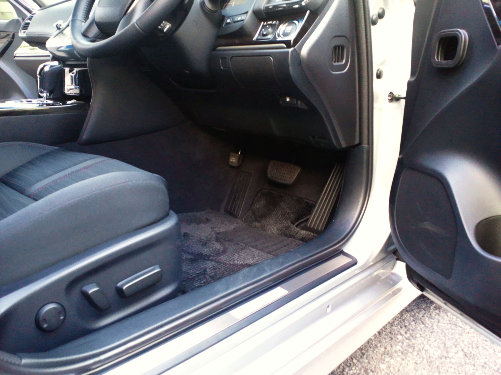 パワーシートスイッチなどまごつきようがない。ブレーキペダルはややサイズが小さいような気がする。ペダル配置や高低差などに違和感は特にない。ドアの見切りやドア内張りがあまりせり出しておらず、つま先をあまり気にせず乗り降りできる。