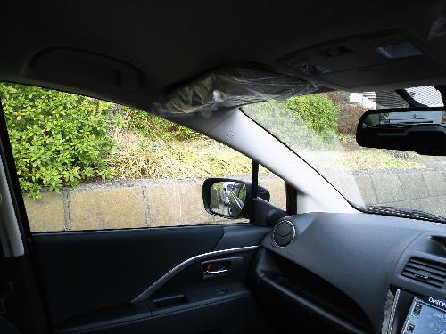斜め後方目視視界。稼げている方だと思うが、それは二列目の背もたれの高さが抑え目であることとも関連していると思う。