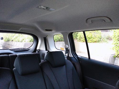三列目には意外と坐れる。頭上は天井ギリギリだし、膝前も支えるが空間的に圧迫感が薄いつくりのためさほど苦痛ではない。エマージェンシーにしては上等といえる空間だろう。