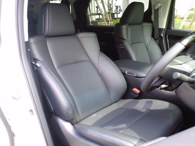ハンドルはチルト、テレスコピックの調整あり。運転席は前後独立の高さ調整(後部は背もたれ連動)前後スライド、リクライニングが電動。シフトレバーは意外にも従前のゲート式を踏襲しているが、このあたりはもうプッシュスイッチにしてしまってもいいように思う。駐車ブレーキはシフトレバー脇のスイッチ操作。装着されているライン装着ナビとエアコン操作はタッチパネル。しかし操作頻度の高いものはダイアルやボタンも併用しており、一定の見識を見て取れる。パワーウインドウは全席、二列目ともワンタッチ。