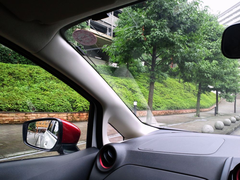 試乗日は雨天だったためあまり目立たないが、そもそもノートのAピラーの存在感は大きかった。映り込みもやはり遠慮がない。せめてピラー内張りを黒く塗ってあればまだマシなのに、なぜ気がつかないのだろう。