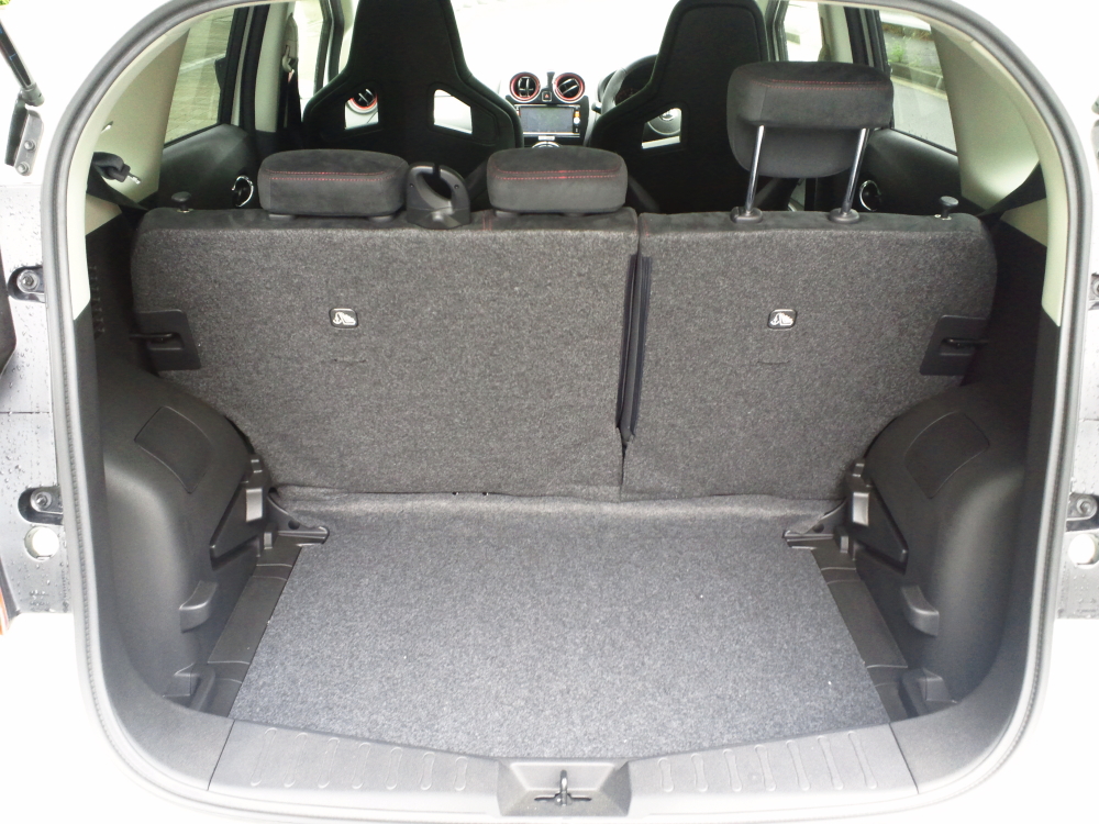 ホイールハウスの出っ張りと思われる部分が思いのほか大きく、平野面積があまり広くはないラゲッジスペース。ま、全長4.2mならこれだけあれば充分か、というところ。