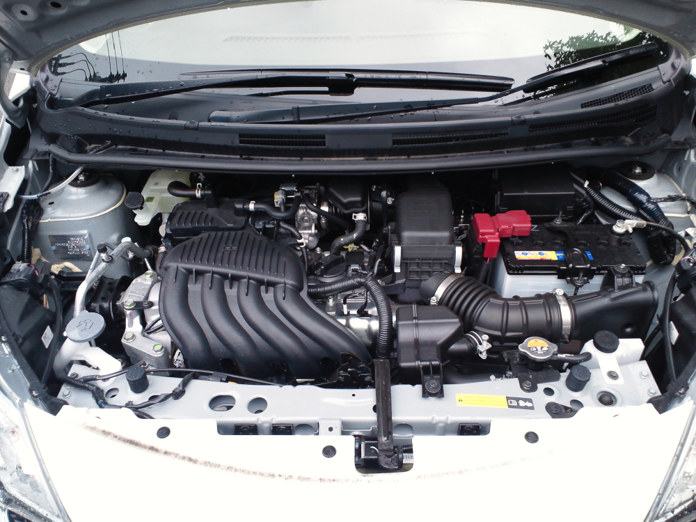 HR16DE型エンジンをこのクルマ専用にチューン。専用シリンダーヘッド、ピストンによる高圧縮化に加えハイカム、専用吸排気などが用いられ、スペック的には140馬力。見た目はご覧のとおりまったくの無味乾燥、というかまるで飾り気がなく、この部分を見てエンジンを判断するタイプの人がいるとするならこのクルマの本分を最後まで理解できずに終わるだろう。