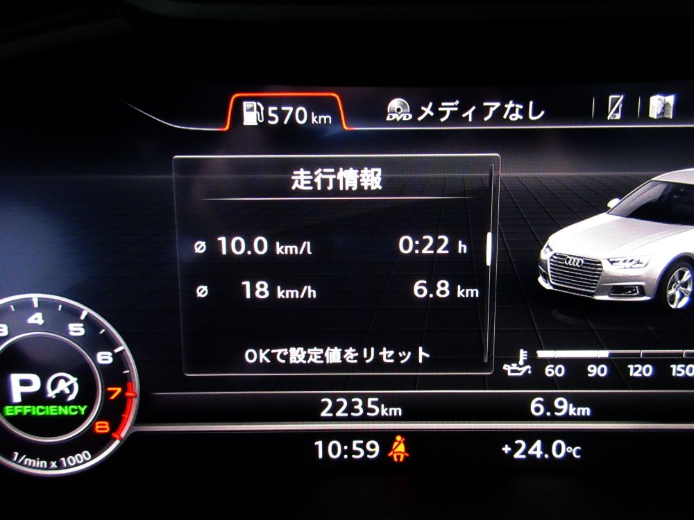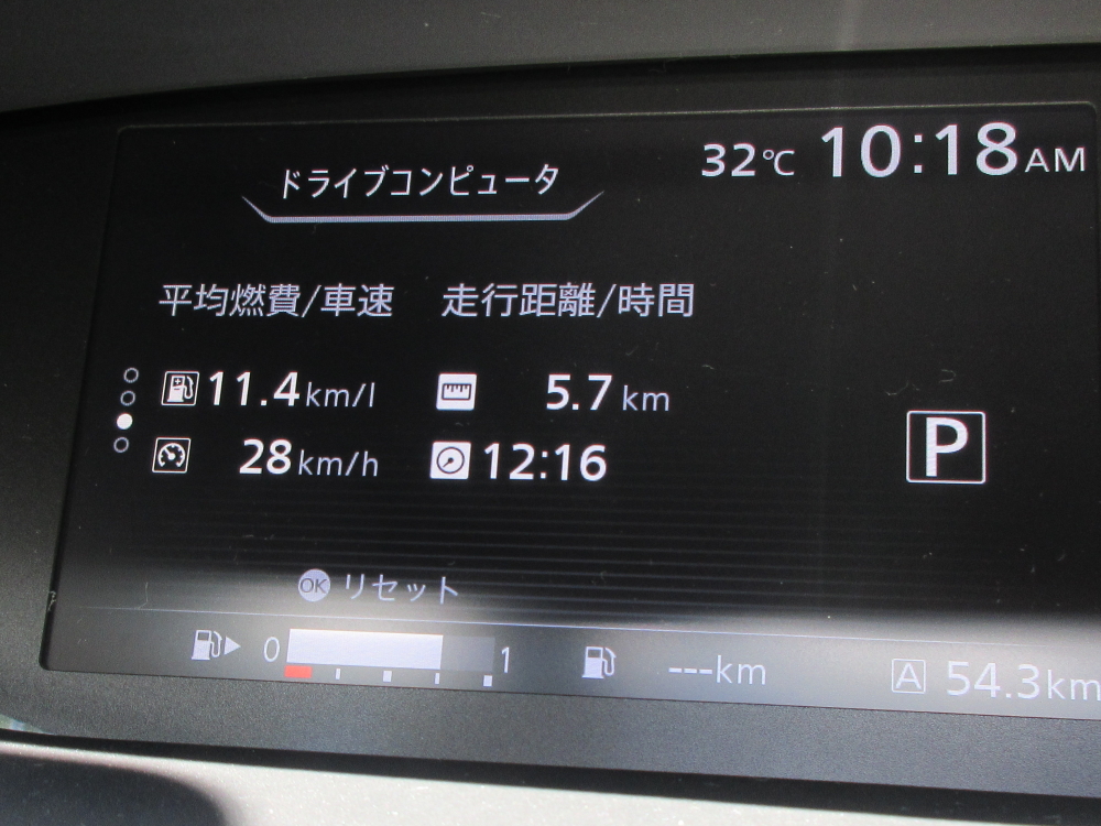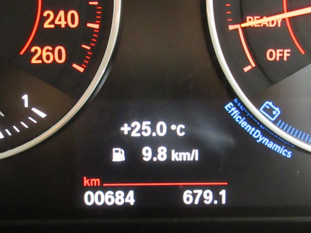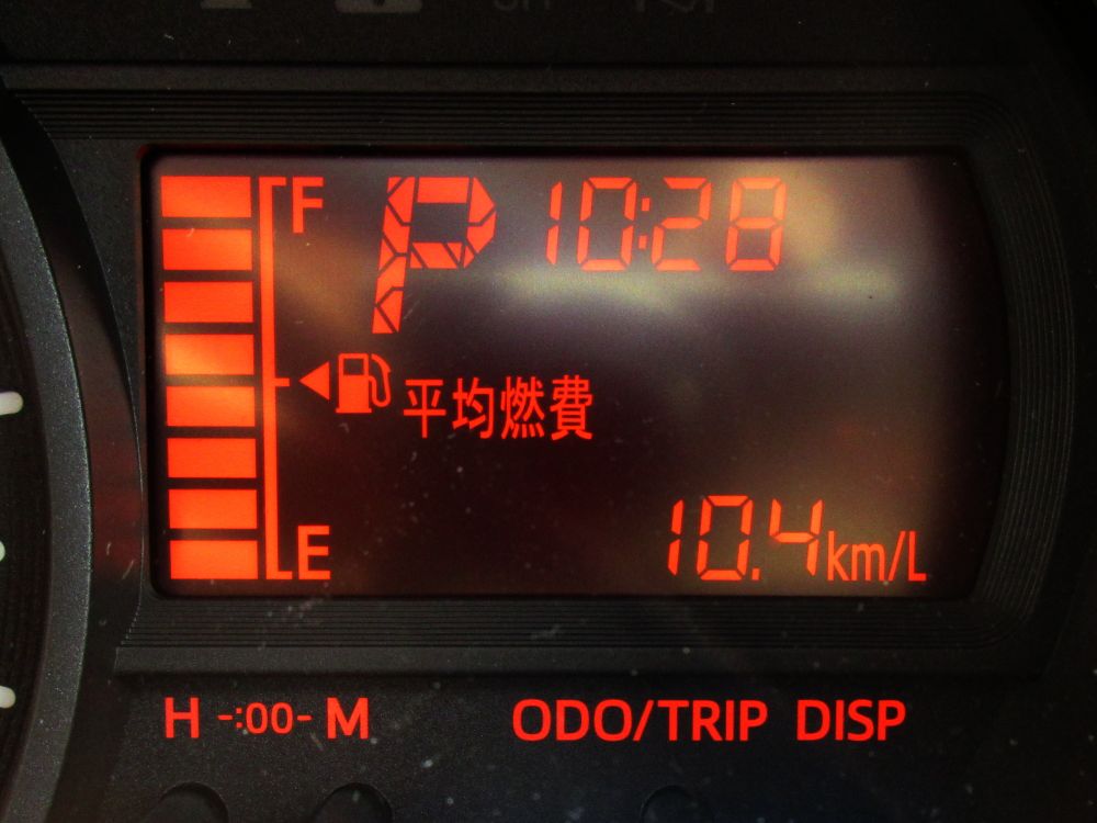メーター内の燃費計はリセットせずに走ったが、走行1000KMにも満たない試乗車の平均燃費値は10.4Km/Lと表示していた。通常、納車された顧客の例ではだいたい15Km/Lから、20Km/Lに届いたツワモノもいたとか。