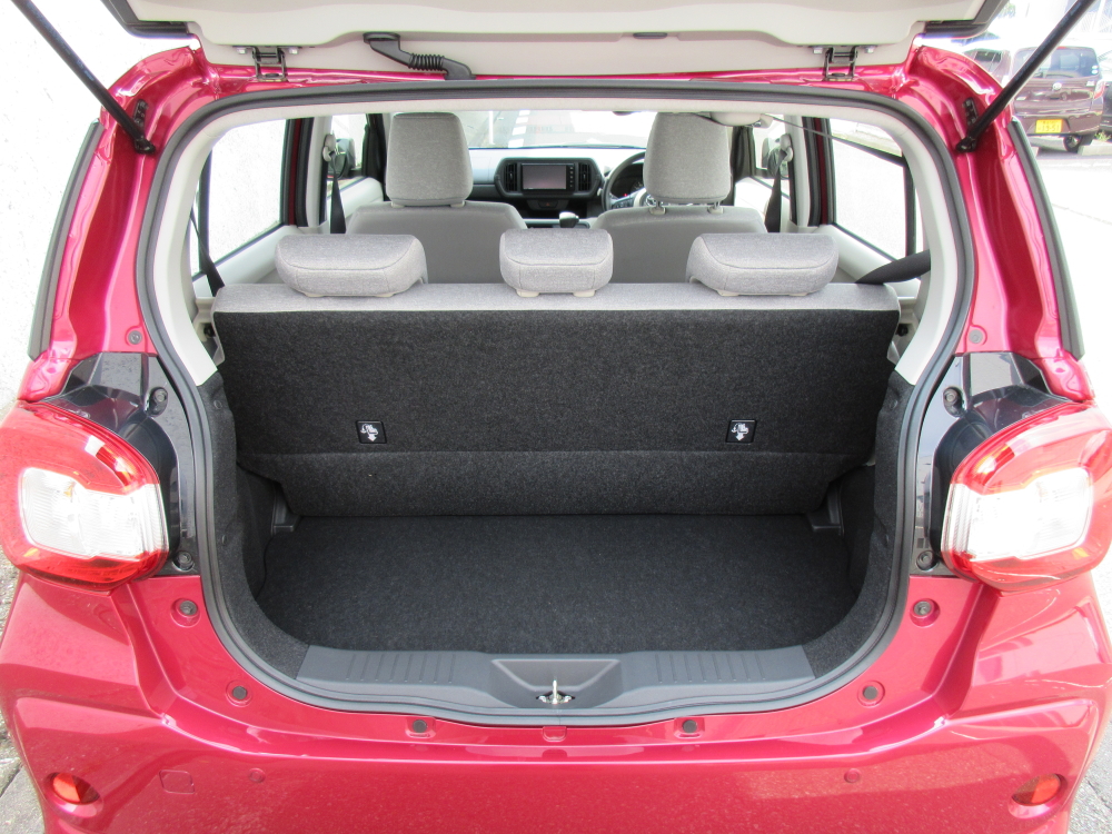 ラゲッジスペースは、このサイズ、このクラスとしては頑張って稼いでいる方と思う。後席バックレストはこのグレードでは一体可倒、上位グレードだと6:4の分割可倒。