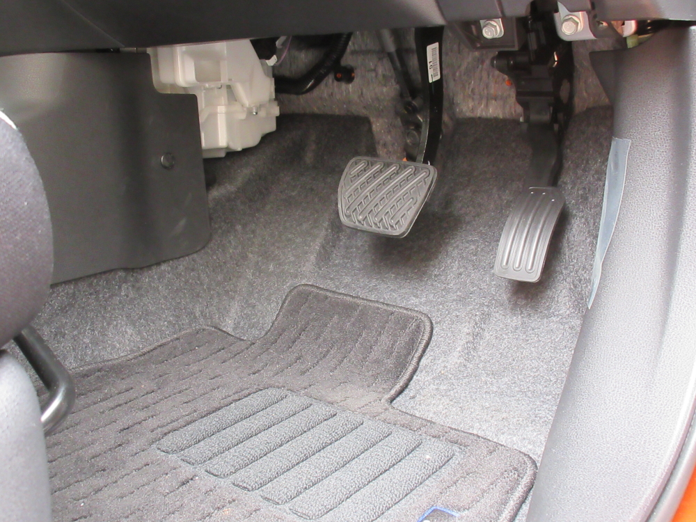 ペダル類の操作感も違和感なし。スペース的にも余裕はあるのだから、きちんとしたフットレストを用意してもいいのに。踏ん張りが効くのと効かないのとではだいぶ違う。