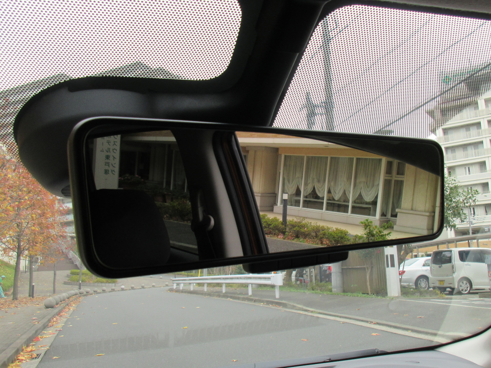 ミラーは今流行りの「カメラで撮影したものを表示する」タイプだが、切り替えレバーで、普通のミラーにもなる。画像は普通のミラー状態。個人的にはこちらのほうが違和感がない。カメラ映像はやや画像が荒いと感じた。