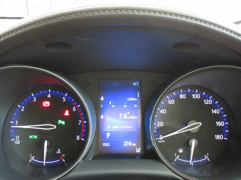 こちらはガソリンターボのほう。高速、一般道半々で約10キロ走行。7.6L/100Kmの表示。エンジンは以前オーリスでも経験した1.2リッターのダウンサイジングターボエンジンで、C-HRへの搭載にあたってレギュラーガソリン仕様とされている。