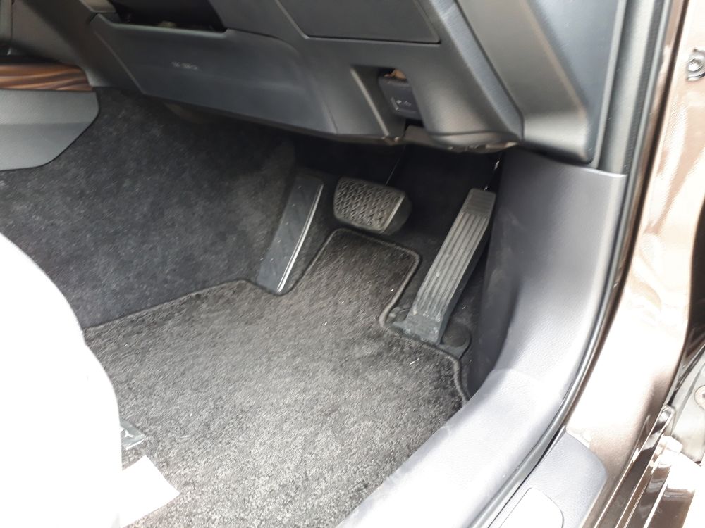 ペダル周りのスペースにも余裕があるのはさすが大型FF車。ブレーキとアクセルの高低差はもう少しあったほうが踏み間違いの防止にもつながるのではないだろうか。多少違和感があったほうが感覚的に今どちらを踏んでいるかを認識できるように思う。