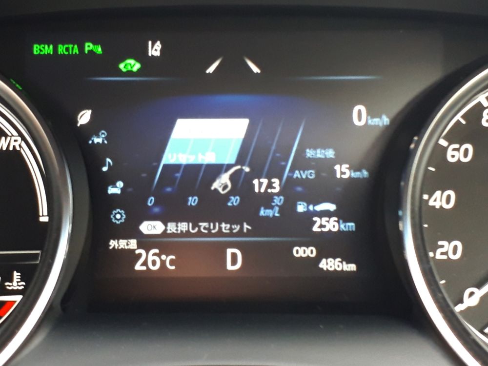 上り坂の多い市街地と幹線道路を30分ほど走って17.3Km/Lの燃費表示。走り方はとくに燃費を意識せずに流れに乗った。