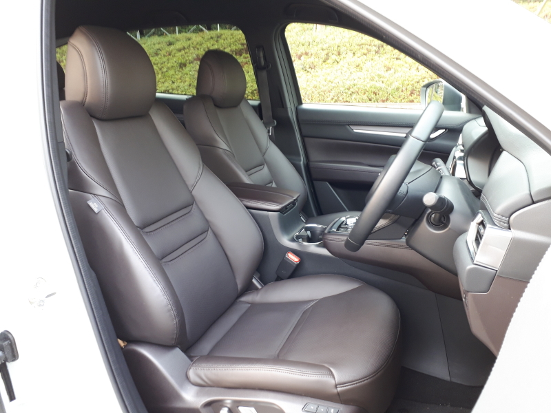 身のこなし、ハンドリング、乗り心地から得る印象は、外観その他以上にCX-5の持ち味と異なる。大きく、長く、重い。走り始めて一つ目の交差点を曲がるまでに、私は「重厚ですね」と発言した。フラットな姿勢、落ち着いた挙動、凹凸やうねりに対するゆったりとした受け応えなどを得ていて、一言でいうなら高級乗用車の「素質がある」という印象。