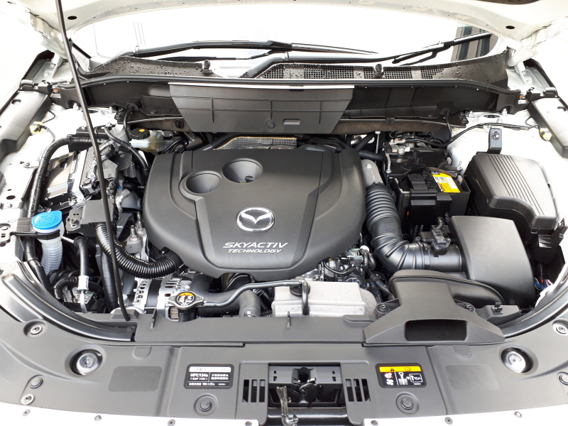 2.2リッター、スカイアクティブDはCX-5等と基本的に同じだが、大きく重くなったこのクルマ専用にチューンされてパワーアップされているとの由(そのうち他の搭載車種も仕様統一を受けるだろう)。車重が1830キログラムとCX-5のディーゼル車より約200キログラム程度重くなっており、その走りはCX-5と同等というわけには行かず、ややかったるい。それならそれでもっとデカいエンジンにするとか、別の提案をしないと、このクルマの「ならでは感」が薄いだけでなく、CX-5と比べて重い、というネガばかりが目立つことになってしまう。